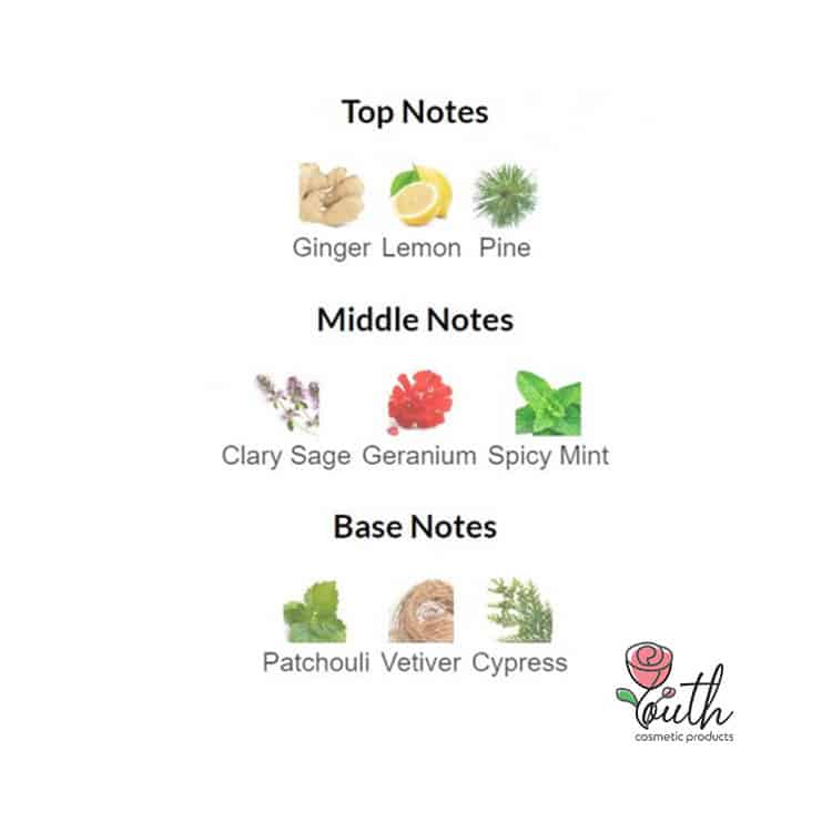 یک رایحه مردانه نشاط آور با نت های بسیار تازه، سبز و معطر بوده که ذهن شما را احیا می کند.