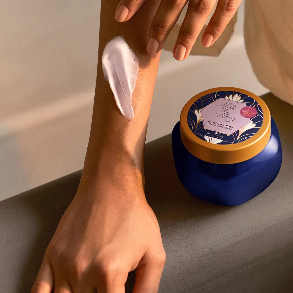 کرم دست و بدن شیر و عسل با رایجه مگنولیا ، ۴۸ ساعت رطوبت را فراهم میکند. غنی شده با شیر، عسل و عصاره مگنولیا، درخشندگی و شفافیت را به پوست شما هدیه میدهد